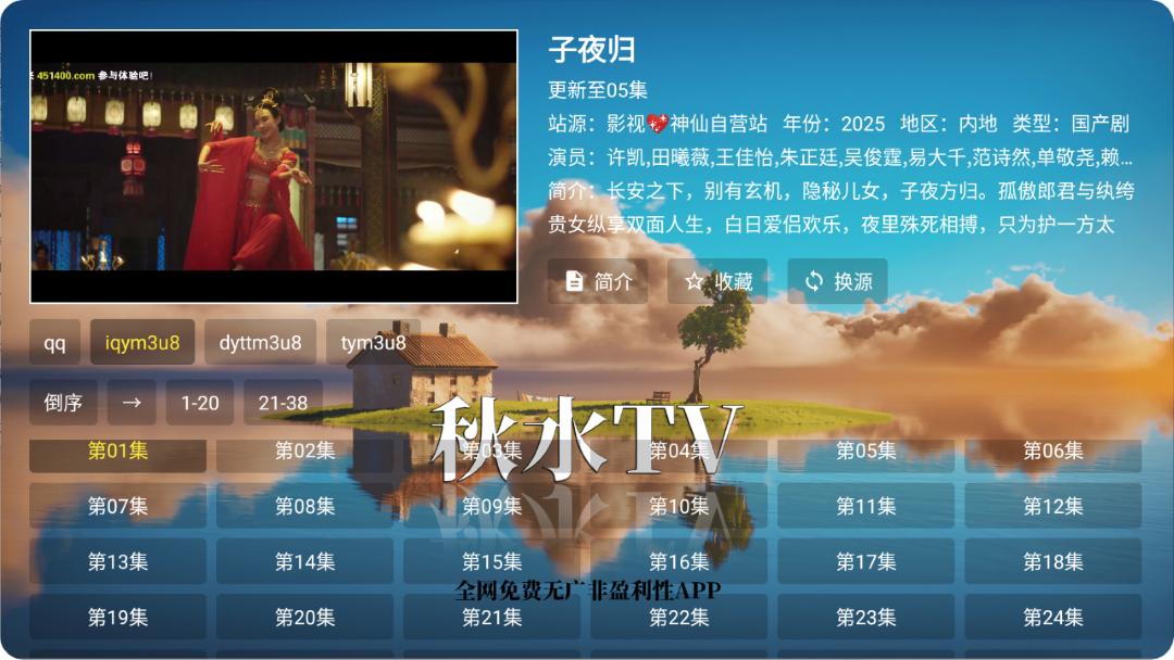 秋水TV是一款专为电视设计的影视播放软件。丰富的影视资源,包括最新的电视剧、电影、综艺等多种类型的节目。实时更新速度快,超清画质和高清蓝光体验。还内置了丰富的直播频道,秋水TV所有内容均可免费观看,无广告,无需注册登录。