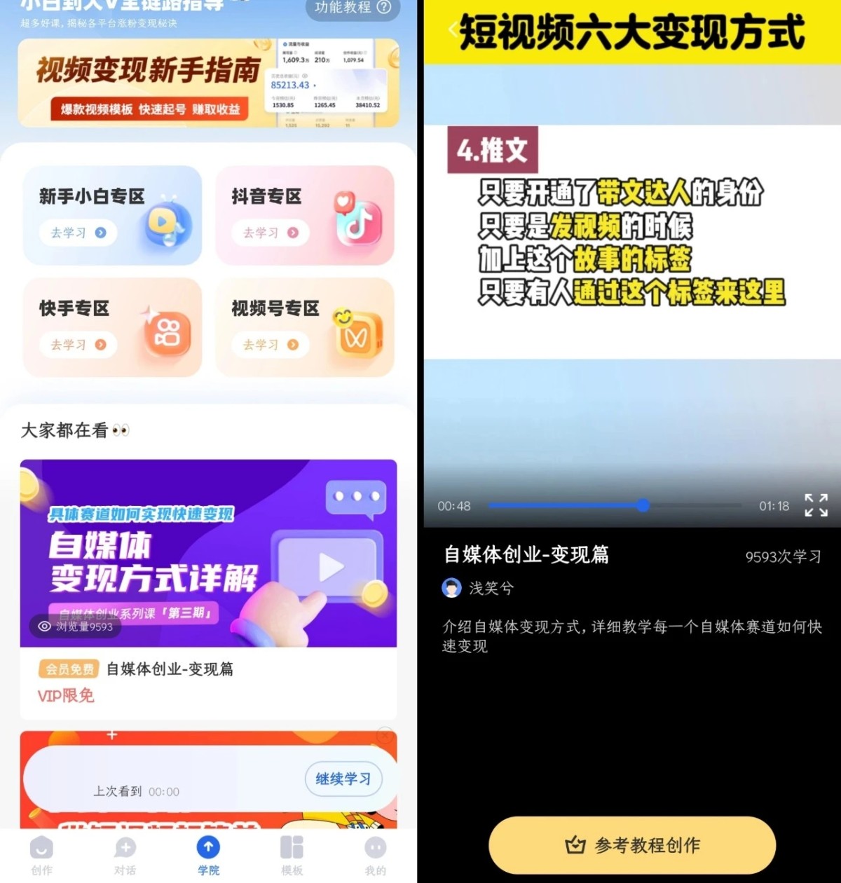 趣映AI,这是一款视频自媒体创作神器。DIY角色动画制作、爆款短视频、一键抠图、提取文字、多人配音、一键字幕、违禁词检测、小说推文、剪辑营销、提取文字等实用功能应有尽有!专业便捷的动画制作功能,专注于夫妻动画、阿雕动画、说书动画的制作,帮你打造热门作品,提供从灵感到成片全流程的辅助,海量模板,一键制作中视频。70+的阿雕角色、30+的夫妻角色、30款冷知识角色、8款说书人角色并且素材都还在持续更新中;200+场景素材、海量样音可供参考、各类模板一键成片。