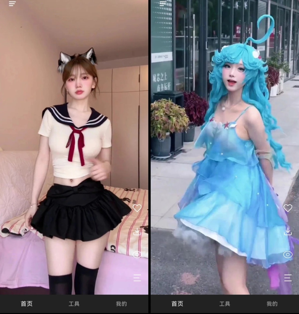 虾看,这是一款看小姐姐的软件。默认推荐、严选、颜值、COS、少萝、爱看(有惊喜),一共 6 个版块可供选择。加载流畅,整体使用还是非常不错滴~ 和某音用起来差不多,区别就是刷到的全是小姐姐视频,也只是收藏、无水印下载等功能!除此之外,内置的小工具,图集解析、视频解析、网盘直链获取,也很实用。