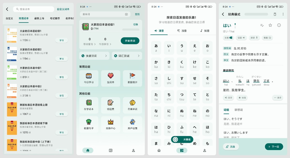 识日是一款专为日语学习者设计的应用,采用像素风格界面,功能全面。用户可以通过这款应用进行日语单词的学习和50音图的学习,并且提供了近50本词书供选择,还支持导入自定义词书。每个单词都配有详细的解释和发音功能。