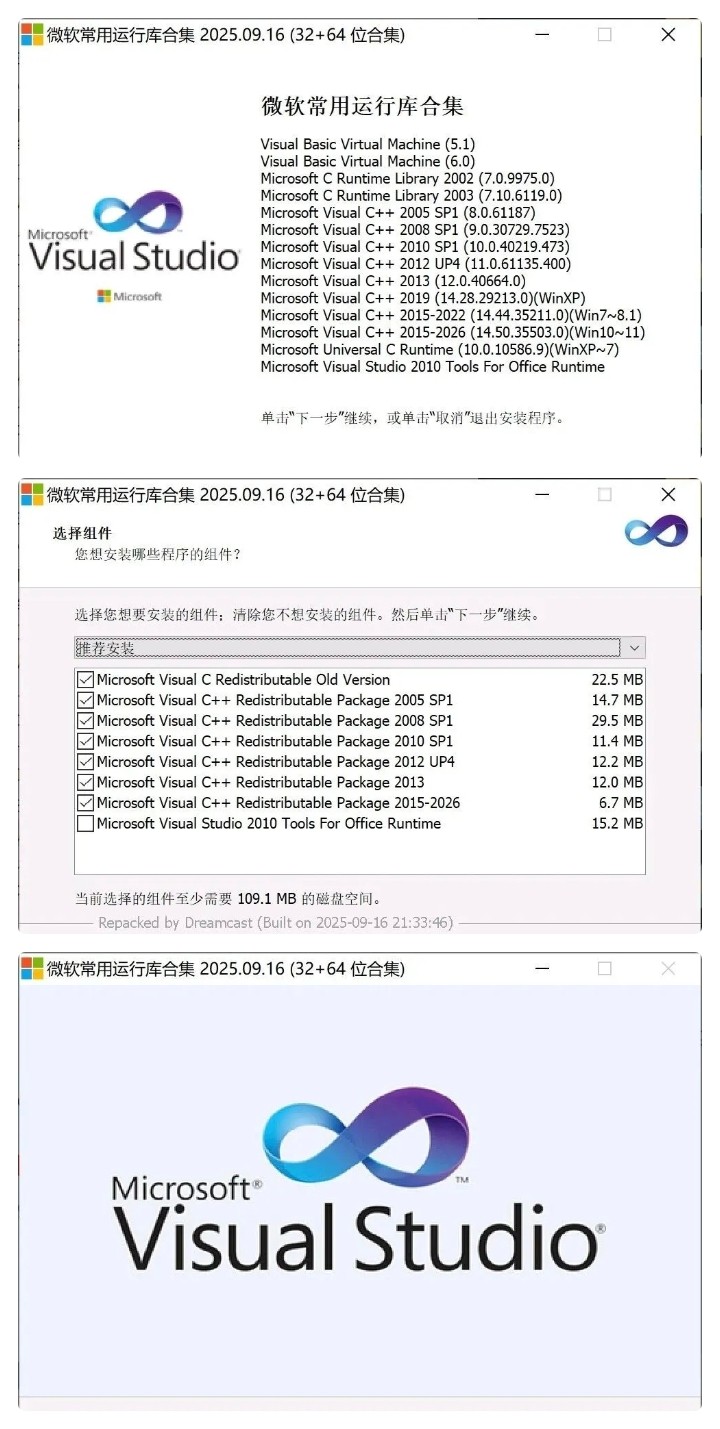 微软常用运行库 2025.10.18 游戏软件运行报错必备,包含多种关键运行库