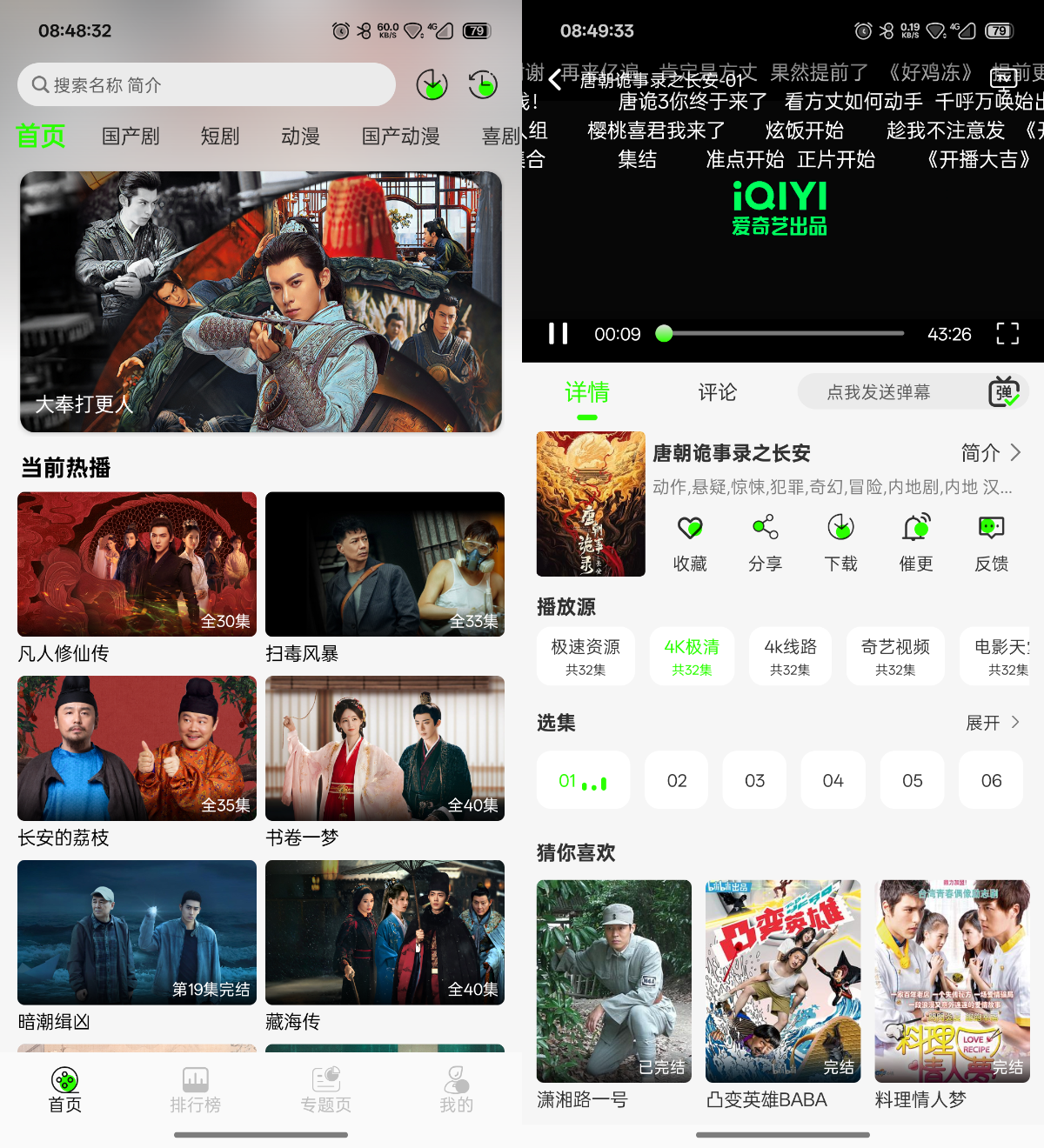 喵影视TV_3.8.0普通版/_3.7.0高级版/4.X低版本完美适配/内置源/4K超清