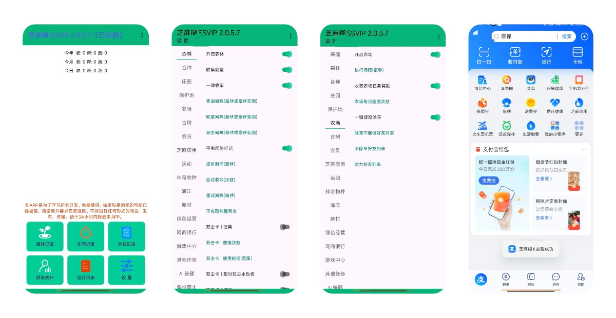 芝麻糊SSVIP是一款专为支付宝用户设计的插件应用,旨在通过自动化技术帮助用户自动完成支付宝内置小游戏的任务,如蚂蚁森林、庄园小鸡等。这款应用不仅能显著节省你的时间,还能提升操作效率,简化日常任务的执行流程,让你的生活更加便捷。无root用户需要下载两个文件,并给支付宝文件权限。