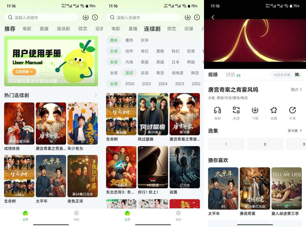 【使用说明】:一款免费的掌上影视追剧神器,提供 电视剧、电影、动漫、综艺、短剧等类型,热播 这里都有,通过关键词准确定位喜欢的影视,全 程无广告高清流畅播放,资源更新快