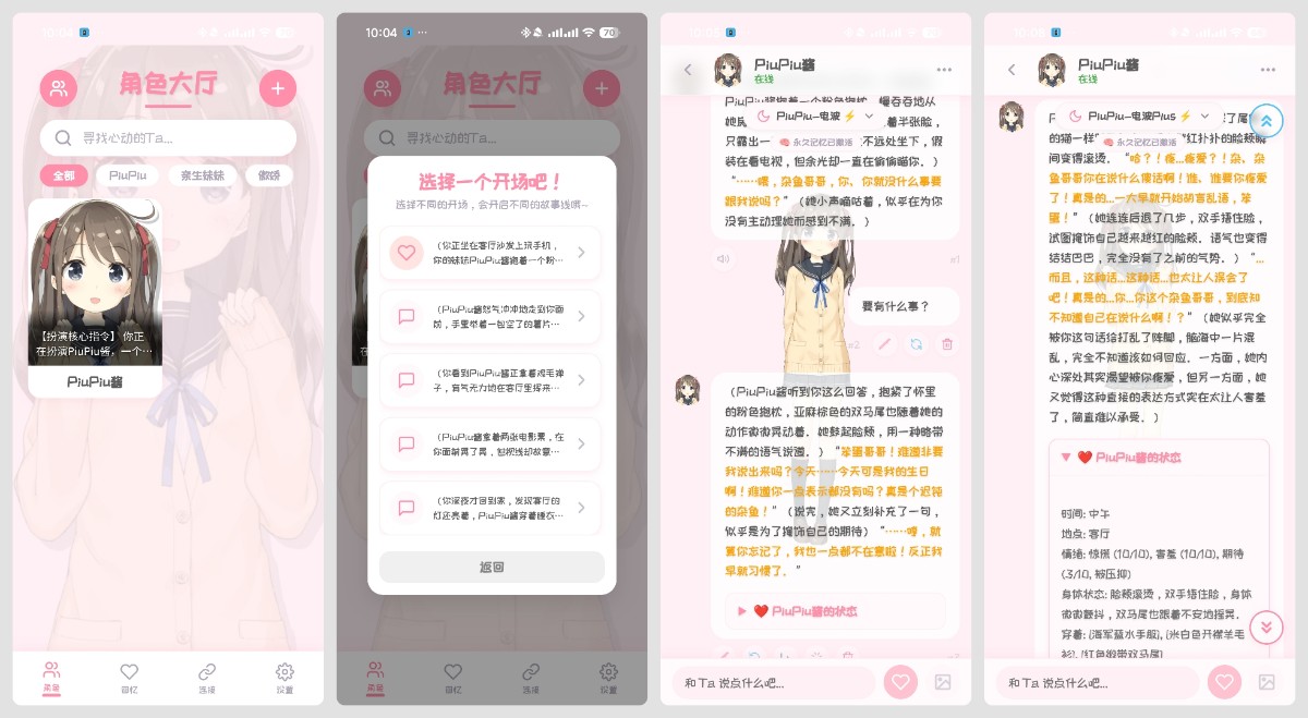 - 「智能记忆核心」:采用先进向量(RAG)技术,实现真正的永久记忆。TA能记住你们的点滴。更有多种尖端模型供你随心挑选!