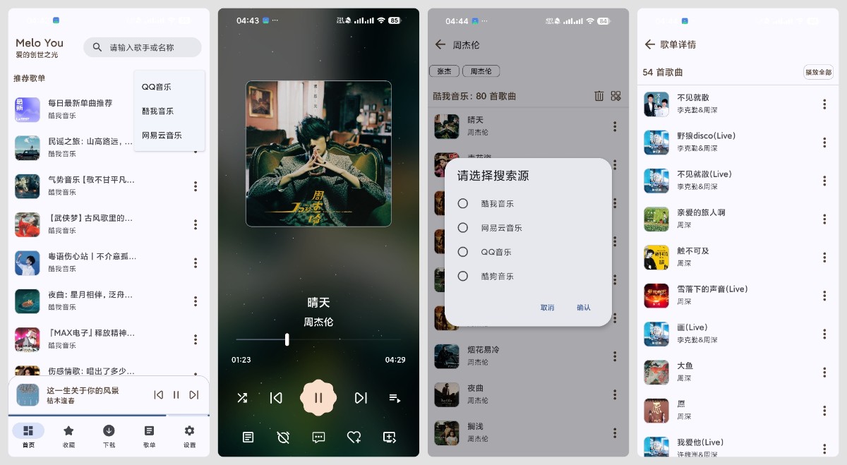 MeloYou 1.4.8 聚合4大音乐平台,无损听歌,纯净无广告