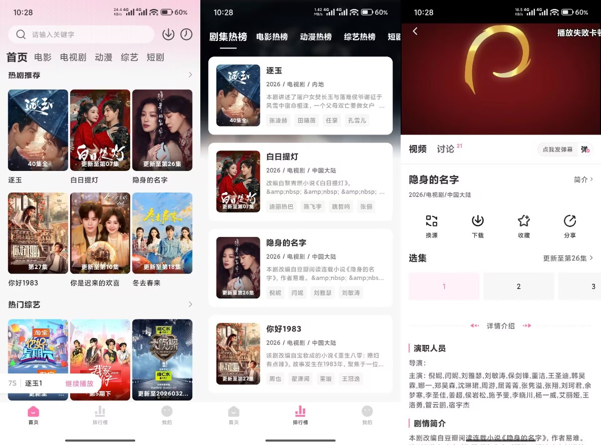 【软件介绍】:一款轻量高效的追剧工具,整合多类型影视资源,支持稳定播放与进度记录,分类清晰查找便捷,全程无广告,连续观影更加轻松省心。
