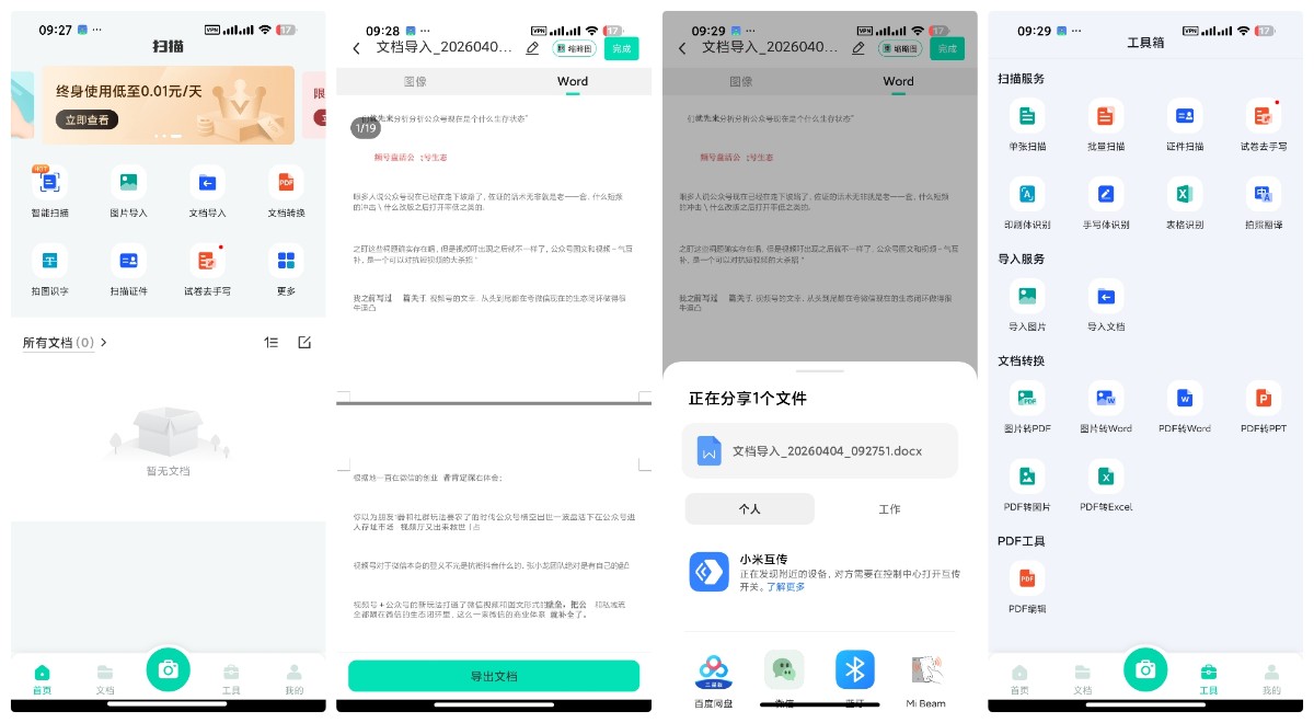 全能扫描工高级版是一款功能丰富的智能扫描软件,集成了文件扫描、图片文字提取识别、PDF内容编辑、PDF分割合并、PDF转Word、电子签名等多种功能。它能自动扫描并生成高清扫描件,支持JPEG、PDF等多种格式保存,还可将扫描件一键转换为Word/Excel/PPT等格式文档。此外,通过多设备同步查看功能,为用户带来便捷的办公体验。无论是日常办公还是学习使用,全能扫描工都能提供强大的支持和丰富的选择。直接安装即可使用,无需复杂的设置过程。