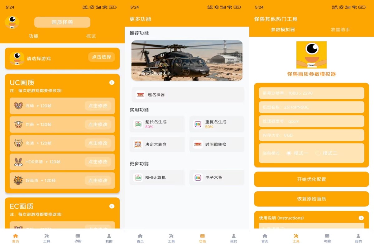 【软件介绍】:一款手机游戏画质优化App,专注于为各类热门手游提供极限画质和高帧率解锁。支持一键优化,调整分辨率、画面风格、帧率上限,助你在游戏中获得更佳的视觉效果和操作体验,轻松制霸战场。(解锁VIP功能)